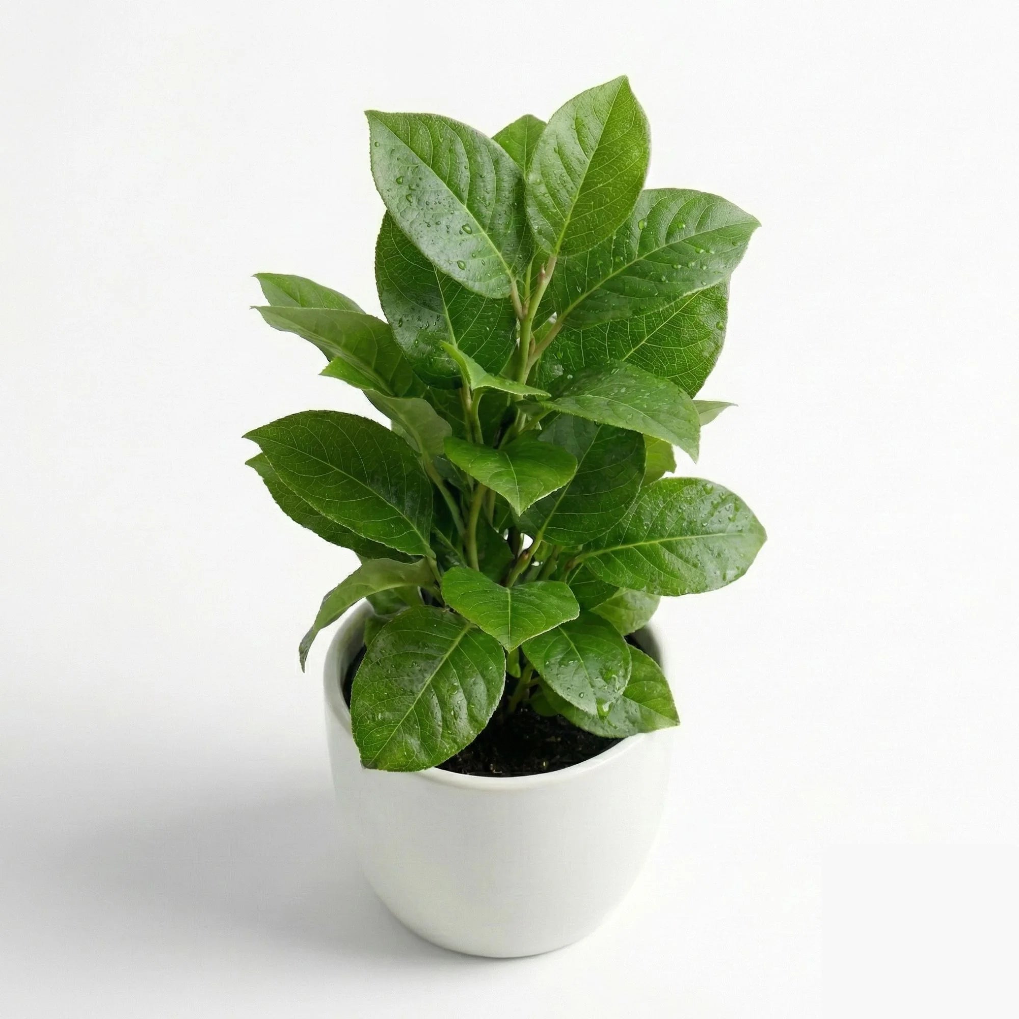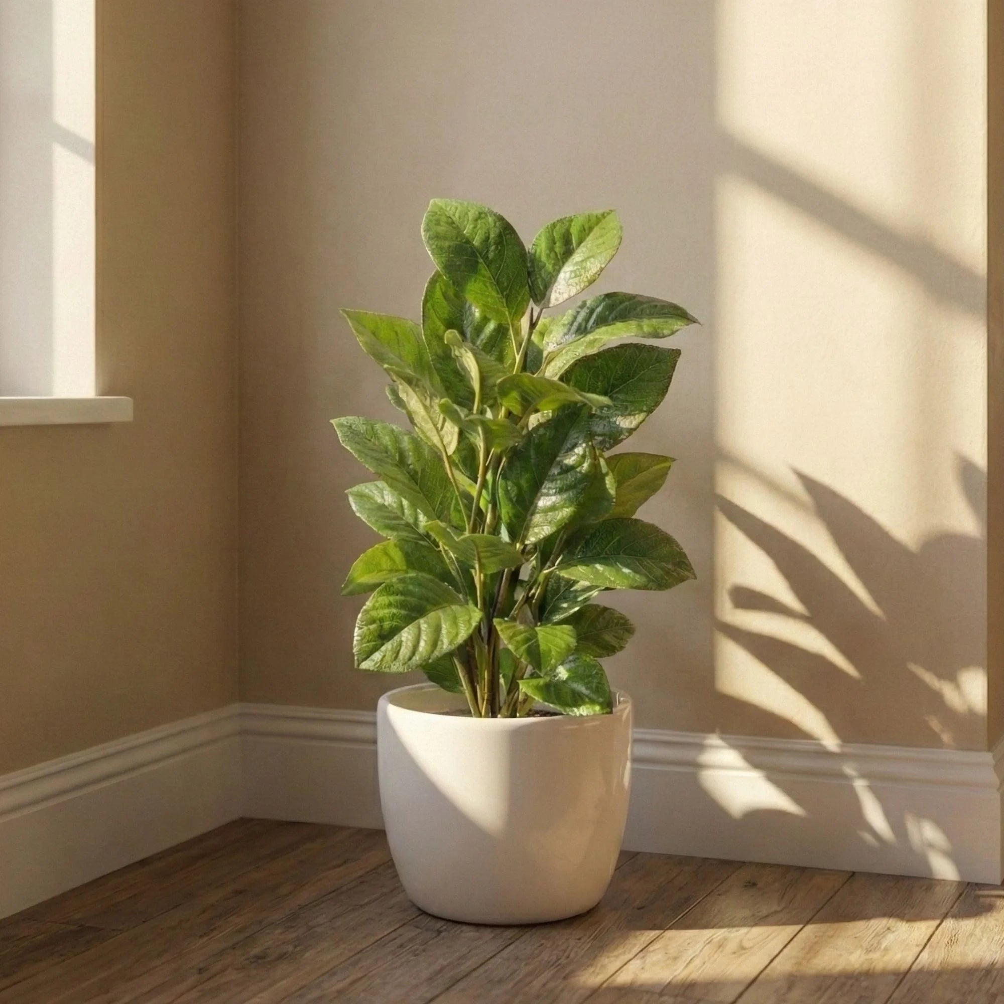 Artificial Green Leaf Potted Plant with White Pot
