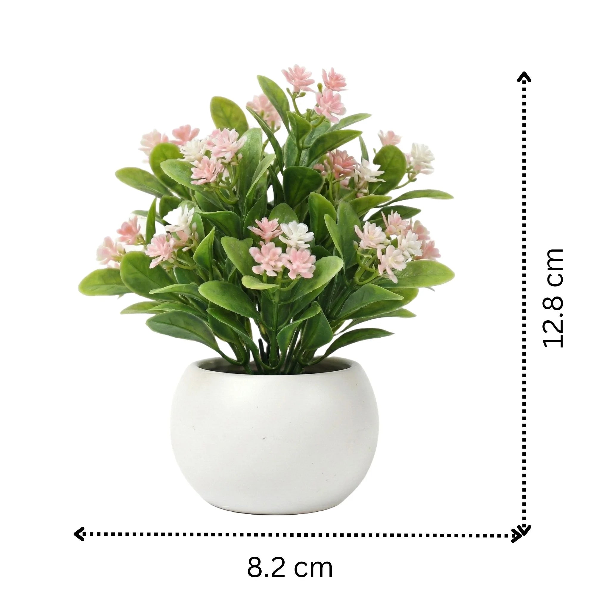 Brighten up your living space with this Mini Artificial Potted Plant, featuring delicate pink and white blossoms. Standing at 12.8 cm tall, this faux flower arrangement adds a cheerful pop of color to any room without the mess of soil or the need for watering. It comes set in a clean white pot, making it a lovely accent piece for coffee tables, windowsills, or office desks.