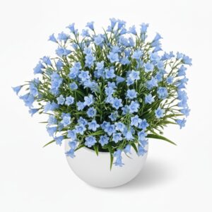 Artificial Blue Bellflower Plant in White Pot